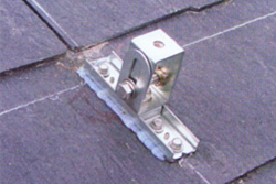 垂木の位置をチェックして、屋根材(スレート)の上から直接、垂木に金具を止めます。