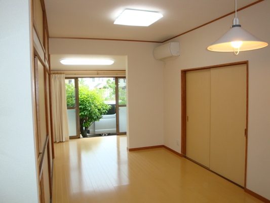 DKと和室6畳が建具で仕切られ、非常に使い勝手の悪い状態でした。その仕切り壁を撤去し、キッチン7.5畳+和室6畳+増築4畳を1部屋にし、17.5畳のLDKとしてリフォームさせていただきました。