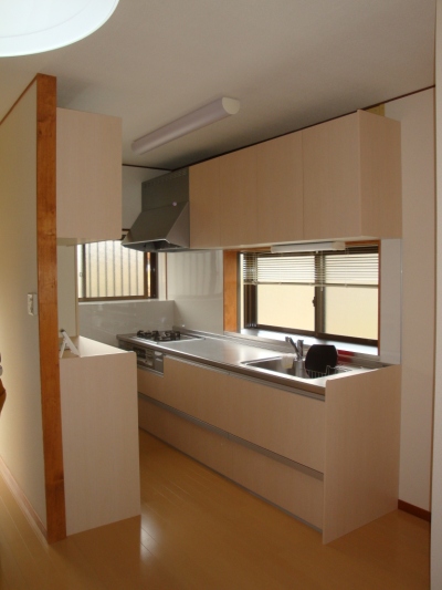 そして、肝心なキッチンです。上の写真は、施工前で、L型のタイプでした。